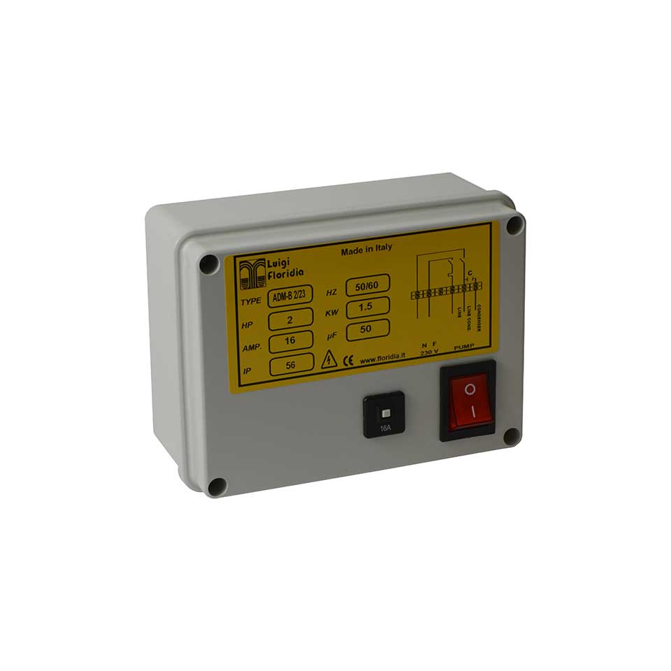 QUADRETTO DI PROTEZIONE PER N° 1 ELETTROPOMPA SOMMERSA HP 2 MONOFASE COMPLETA DI CONDENSATORE MOD. ADM-B 2/23